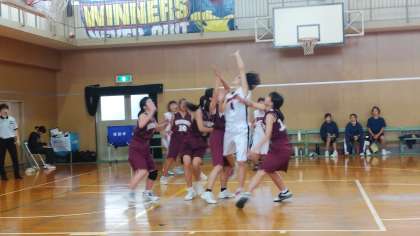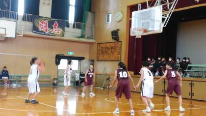 終盤、ファールゲームとなって、与えられたフリースローを本校の4番さんや5番さんが着実に入れて、少しずつリードを広げ、ディフェンスも辛抱してがんばりぬき、38対32で、本校女子バスケ部が勝利をおさめました。明日の本校での試合も勝ってください。