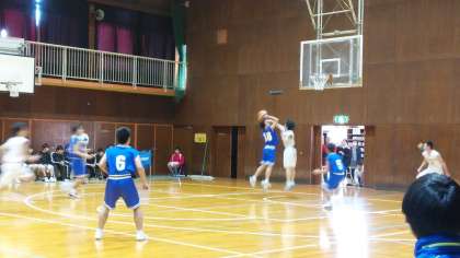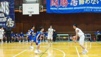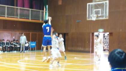 先週に引き続き、バスケットボール部は「7B新人大会」が開催されています。今日は大領中学校で、本校の男子バスケ部が試合に出場し、強豪校の住之江中学校との対戦です。序盤から相手校は調子よく、ステップインからのシュートやアウトサイドからの3ポイントシュートがきまり、徐々に差を広げていきます。