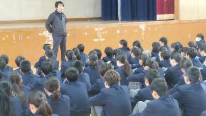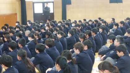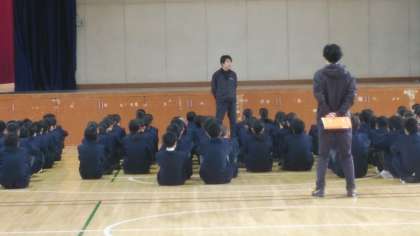 毎週金曜日は、1年生で、定例の「学年集会」が行われます。今日は開始時間より生徒のみなさんが、早く集合できていたため、早めのスタートとなりました。すばらしい。