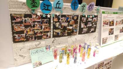 本校のPTAさんも出展されており、PTA成人文化さんらの主催で行われた「手芸講習会」で作成した「ハーバリウム」や「社会見学」で訪れた伊賀上野での体験をまとめた写真ボードが展示されています。