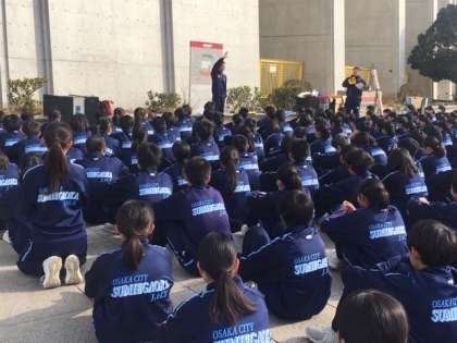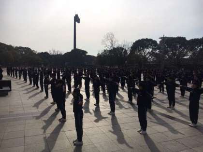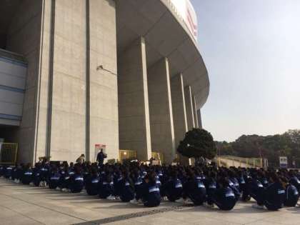 4日から順延していました、1,2年生の「駅伝大会」が実施されました。今日は、最近になく、ポカポカ陽気で、走るにはベストコンディションとなりました。本校から長居公園まで徒歩で移動し、スタジアム前で準備を行いました。