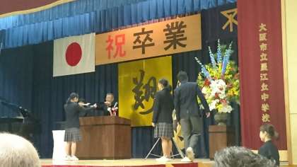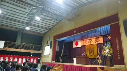 本日3月13日、晴天のもと、「第40回卒業証書授与式」が行われました。3年生は、すがすがしい表情で、式に臨んでいました。担任の先生から1人ずつ、名前が呼ばれ、元気な声で返事をし、校長先生から「卒業証書」を受け取っていました。