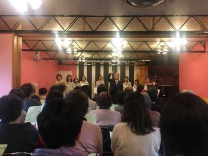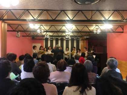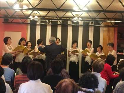 24日(日)上住吉の山田カフェでは、本校元PTAの皆さんのコーラスグループ「コール墨江丘」のティタイムコンサートが催されました。会場には多くの皆さんが集われ、美しいコーラスとお話を楽しみ、全員で合唱のも行い、最後にお茶とケーキをいただきました。