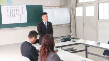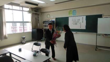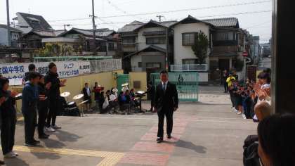 来年度より、墨江丘中学校に赴任される、林校長先生を、吹奏楽部の演奏のもと、教職員、PTA実行委員会のみなさん、地域のご代表の方々で、お迎えしました。