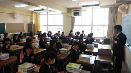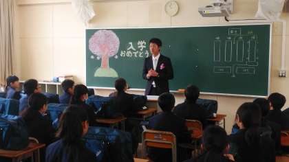 式後は、各教室で先生方から、「こんなクラス」「こんな学年」にしていきましょうと、思いが伝えられました。また、中学校で学習する9教科の教科書を受け取りました。学習に、行事に、部活動にしっかりと励んでくださいね。