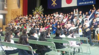 ぽかぽか陽気の本日、校区の両小学校で「入学式」が行われました。かわいらしい新入生を、2年生のお姉さん、お兄さんたちが出迎え、歓迎の歌を元気よく歌っていました。新入生のみなさん、たくさんのお友だちと、仲良く過ごしてくださいね。