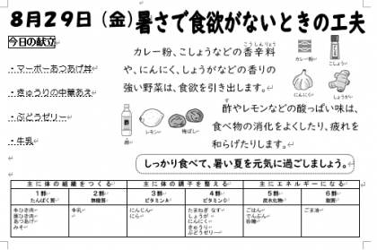 牛ひき肉・豚ひき肉・厚あげ・たまねぎ・なす・にんじん・にら・しょうがなどがたっぷりの「マーボーあつあげ丼」、「きゅうりの中華あえ」、「ぶどうゼリー」などをおいしくいただきました。