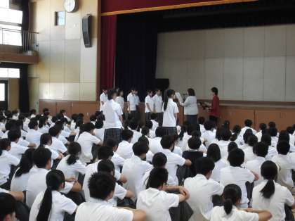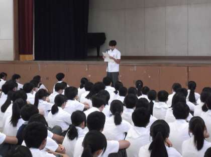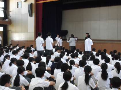 今日から9月がスタートしました。朝の全校集会ではバドミントン部と剣道部の表彰がありました。校長先生の話の後は選挙管理委員会から後期生徒会役員選挙の公示がありました。今回は1、2年生が立候補できます。ぜひ墨江丘中学校・全校生徒の皆さんの明るい未来のために立候補してください。よろしくお願いします。