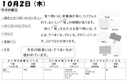 本日の給食は上記の通りです。