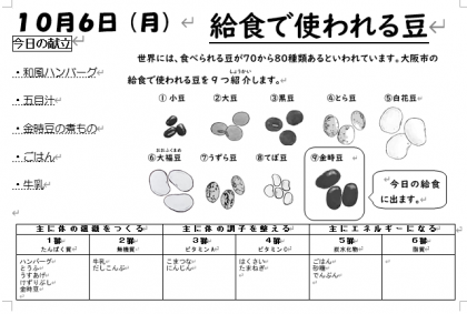 本日は「中秋の名月(ちゅうしゅうのめいげつ)」。古くから月見をして美しい月を愛でる慣習があります。本日の給食は上記の通りです。
