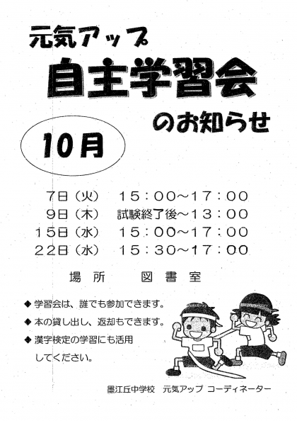 10月の元気アップ自主学習会の活動予定のお知らせです。