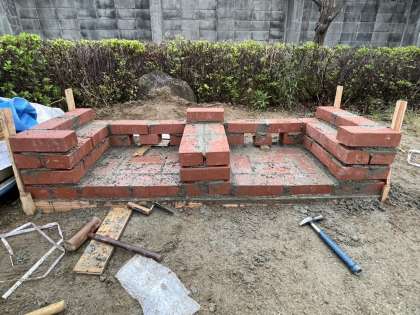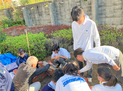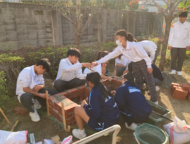 おはようございます。墨江丘中学校では先月末より、正門近くの藤棚付近に『かまどベンチ』の作成を行っています。
