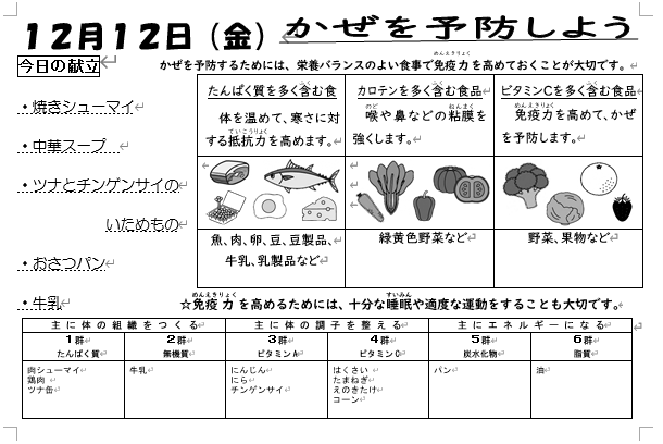 「おさつパン」、「焼きシューマイ」、鶏肉と白菜・玉ねぎ・にんじん・にら・えのきたけなどを煮た「中華スープ」、コーンも入った「ツナとチンゲンサイのいためもの」などをおいしくいただきました。