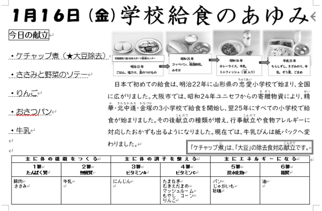本日の給食は上記の通りです。