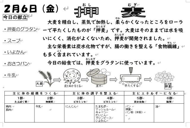 本日の給食は上記の通りです。