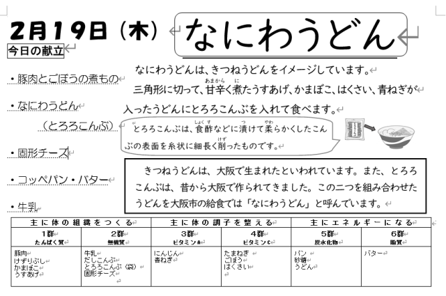 温かい「なにわうどん・とろろこんぶ」、「固形チーズ」などをおいしくいただきました。
