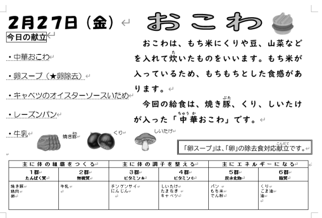 本日の給食は上記の通りです。