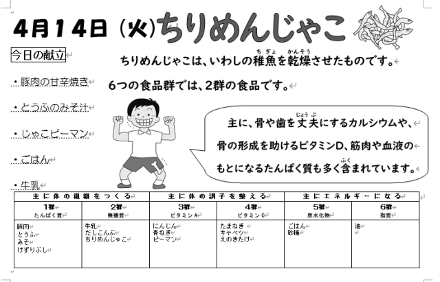 本日の給食は上記の通りです。