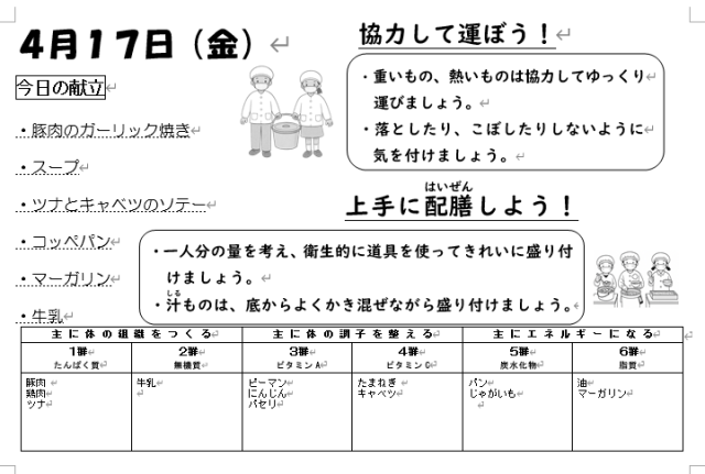 国どうしの争いごとや国内でも大変悲しい事件がおきています。給食をおいしくいただける何気ない日常や、周りの人に感謝しましょう。