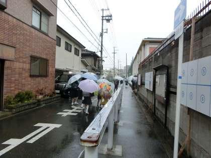 冷たい雨の中、児童さん・生徒たちが登校してきました。