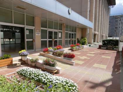 学校は敷地も広く、正門の庭もキレイな草花で彩られていました。