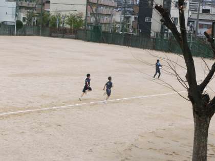 グラウンドでは、50m走が行われています。