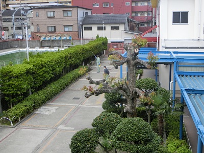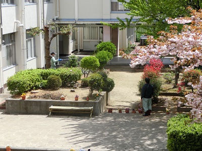 害虫対策のため、管理作業員さんの手で、薬剤散布が行われています。