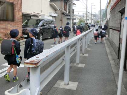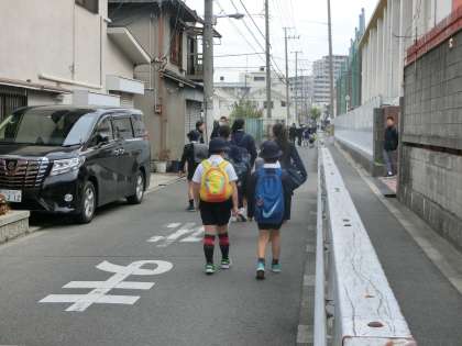 昨日と比べて、寒くなく、児童さん・生徒たちは元気に登校。