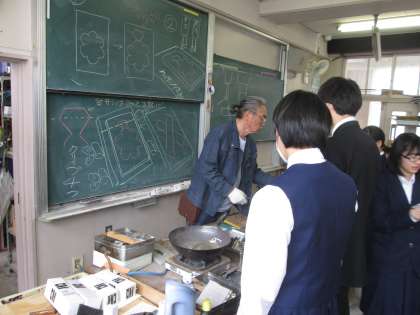 前のテーブルでは、何やら金属が熱せられています。