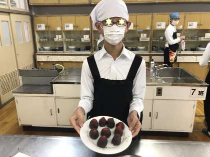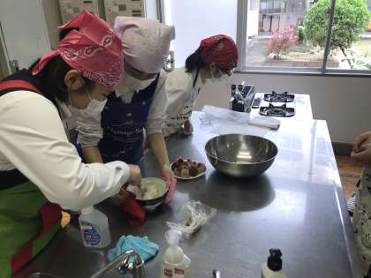 生徒たちはエプロン姿で手際よく、とても柔らかくて美味しいイチゴ大福を作り上げました。