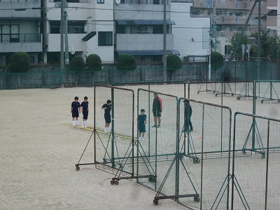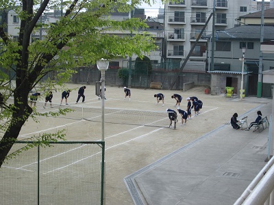 グラウンドでは、テニス部男子、野球部、サッカー部が活動しています。