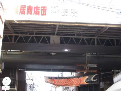 「こどもの日」を前に、長居商店街に大きなこいのぼりが掲げられました。