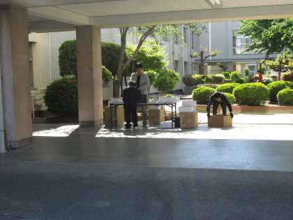 本日、体育のプール授業で使用する水着の販売が行われました。