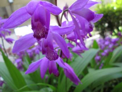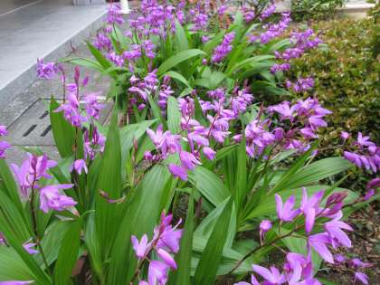 中庭の薄紫色がとても美しい紫蘭が、満開を迎えました。