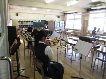 格技室では卓球部、美術室では美術部、音楽室では吹奏楽部が活動しています。