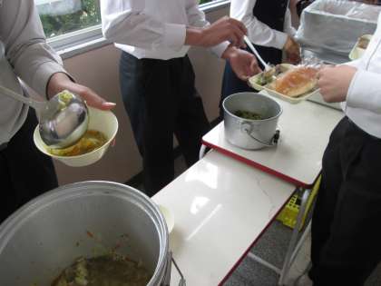 4時間目が終了し、待ちに待った給食です。