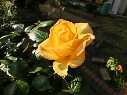 太陽に輝く中庭のバラ。