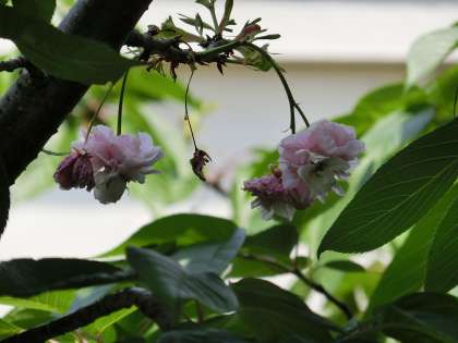 八重桜をよく見ると・・・まだ花弁が落ちず!