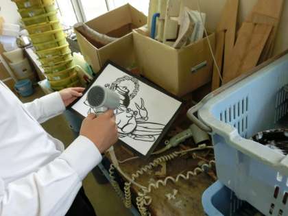 筆やマジック、カッターなど道具を使って、ていねいに仕上げています。