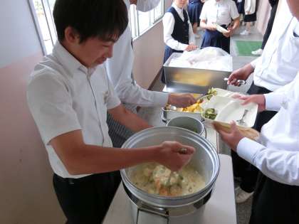 4時間目が終了し、給食の配膳タイムとなりました。