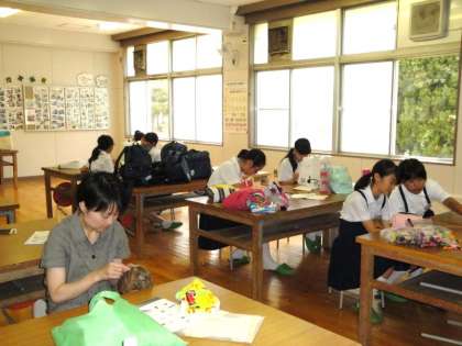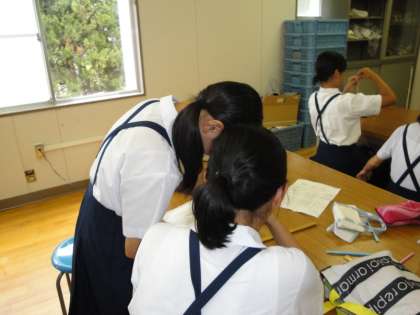 家庭科部は、1年生2人、2年生7人、3年生4人で活動しています。手芸、編み物などそれぞれが作りたい作品に取り組んでいます。年に数回、調理実習でお菓子や料理を作ったり夏休みには、実技講習会に参加したりしています。