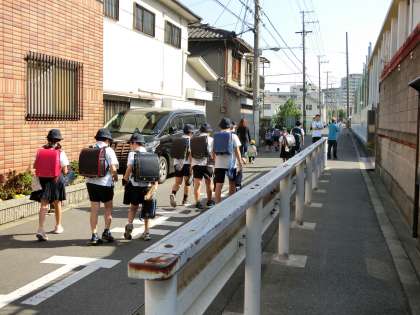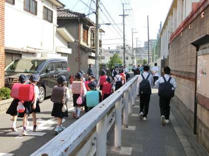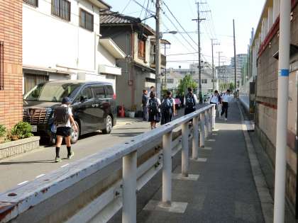 清々しいお天気の中、児童さん・生徒たちが登校してきました。