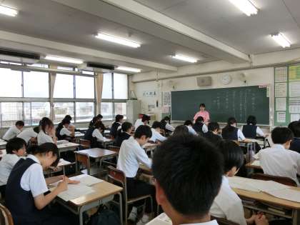 国語の時間。中間テストの返却、答え合わせです。