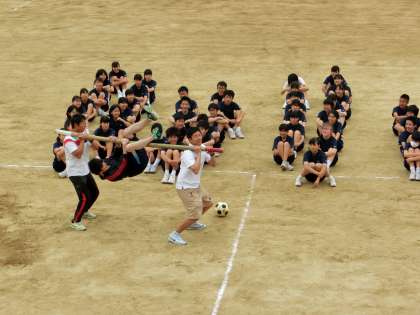 サッカーボールや、大竹を使ったリレー種目のようです。
