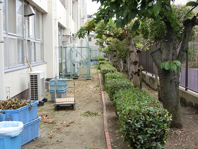 大領中には、校舎やグラウンドのまわり、中庭に多くの樹木があります。