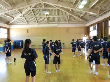 本日は、1限から学年練習のため、体操服に着替えての集会です。