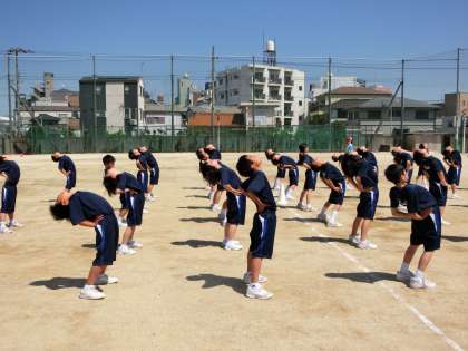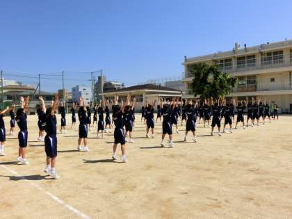 ラジオ体操は、身体を動かす前の準備運動ですが、しっかり曲げて伸ばすと、青空が気持ちよく目に飛び込んできます。