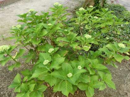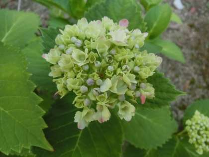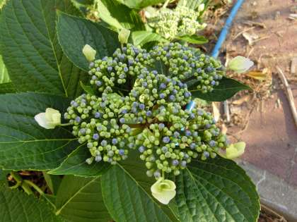 ガクアジサイがしだいに開花しています。