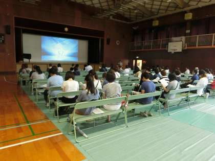 本日、第一回目の保護者対象進路説明会を体育館で行いました。