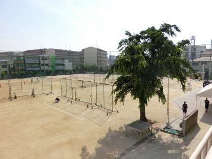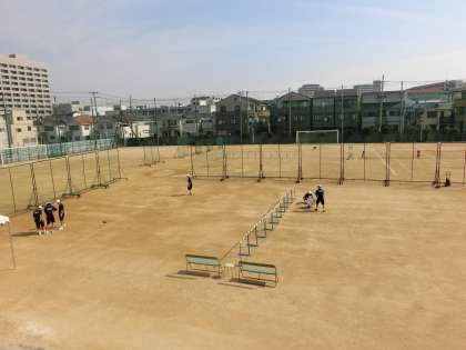 テニスコートがグラウンドいっぱいに広がっています。